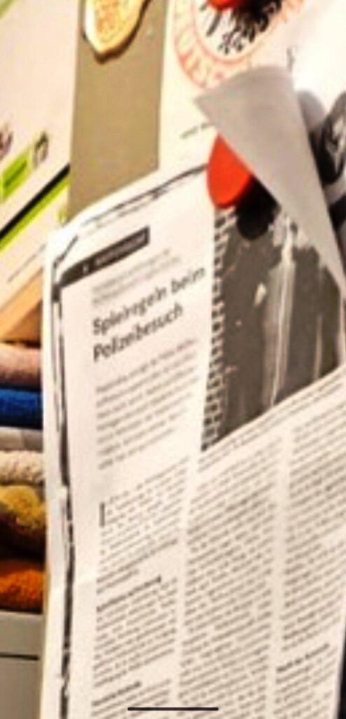 Dem Wuppertaler Journalisten Sebastian Weiermann ist bei der aufmerksamen Betrachtung der staatsanwaltschaftlichen Pressefotos aufgefallen, dass im privaten NS-Museum und Kriegswaffenlager die Kopie eines Zeitungsartikels angepinnt wurde. Titel: „Spielregeln beim Polizeibesuch“ (https://bsky.app/profile/sweiermann.bsky.social/post/3m4bv6ixuek2j). Bisher ist unbekannt, in welcher Zeitung der Artikel veröffentlicht wurde. Wir fänden es ebenso wie Weiermann recht interessant, hierüber mehr zu erfahren und wünschen, dass diese und ähnliche Spuren ausermittelt werden.