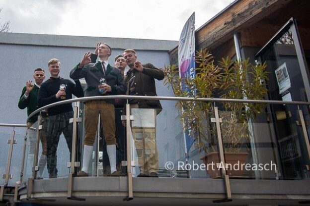 Neben den beiden Bonner Raczeks Fischer und Thiele (der seit einem Aufenthalt in München außerdem Farben der Danubia München trägt), bestand die Gruppe aus Leander Huber („Burschenschaft Arkadia-Mittweida zu Osnabrück“ und ehemaliges Mitglied des JA-Landesvorstands Niedersachsen), Marvin „Wotan“ Sander („Burschenschaft Gothia Salzburg“, aktiver IB-ler in Österreich und Schriftführer des „Rings Freiheitlicher Jugend Salzburg“ [RFJ]) und Hendrik Hebestreit, wie Thiele von der „Danubia München“. Die Anklage gegen Fischer wegen des Eindringens in das Wohnheim wurde wegen schwerwiegenderer Anklagen fallen gelassen, aufgrund der Geschehnisse im Englischen Garten und dem Zeigen eines „Hitlergrußes“ nach einem Fest wurde er zu 120 Tagessätzen à 15 € verurteilt. Der Prozess gegen Thiele und Hebestreit wurde abgetrennt, das Verfahren gegen Thiele eingestellt. (Zum Prozess: https://autonome-antifa.org/breve9534 )